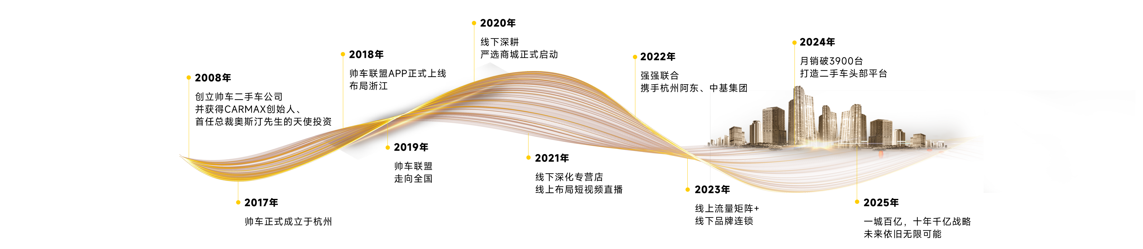 帅车致力于打造线上流量矩阵+线下品牌连锁模式,以真车源+真车况+真车价+真服务的经营理念携手行业内的诚信从业者,合力共创值得信赖的二手车创业服务平台、交易服务平台、运管服务平台,让每位用户都能享受到高效、便捷、全方位的汽车交易服务。