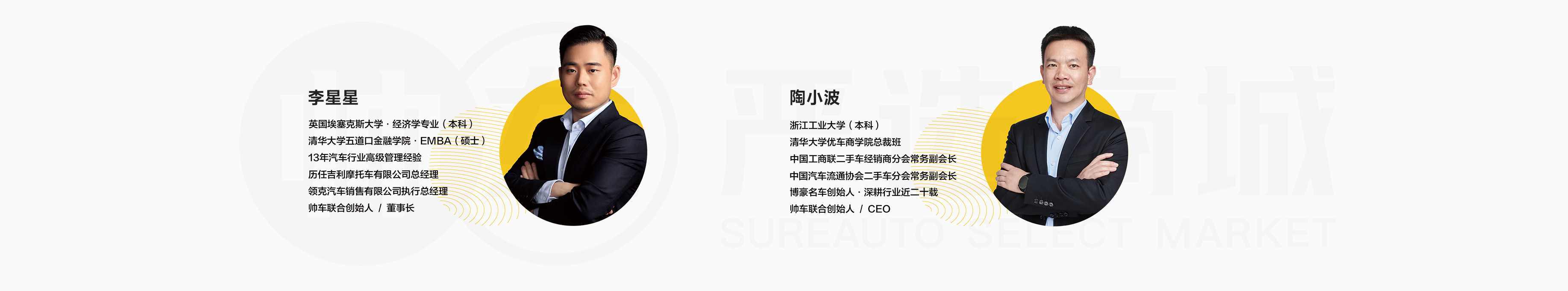帅车是中国二手车经销商全国前三强企业,由吉利控股集团副总裁李星星发起,联合中国二手车行业杰出代表陶小波先生共同创立。